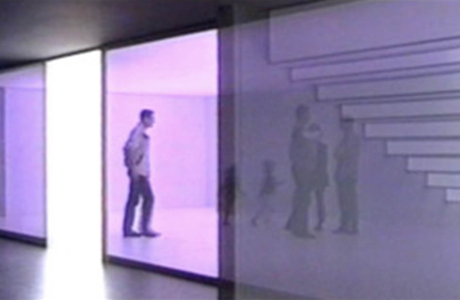 Dans le musée d’Art moderne de la Ville de Paris, pour sa première exposition en France en 1994, l’artiste américain Bob Irwin choisit de « désœuvrer » les lieux habituels d’exposition du musée en choisissant d’investir les lieux de passage : escaliers, couloirs, plafonds… qu’il dilate ou condense en sculptant la lumière via de multiples écrans opaques, ou au contraire, réfléchissants, pour en révéler d’autres possibles.