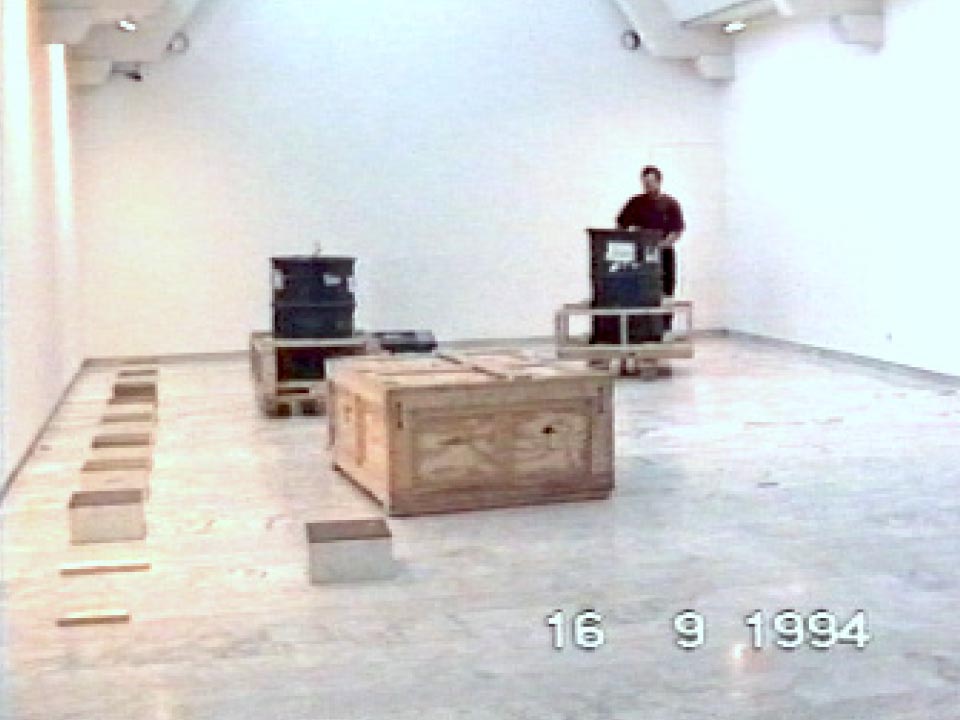 Le film rend compte de l’installation des œuvres (non sites) dans le musée, considérant cette mise en œuvre de l’exposition rétrospective comme un « paysage entropique ». Il s’inscrit dans le temps réel de fabrication de l’exposition : le temps de transformation du lieu, et dans le temps de sa monstration, la date de prise de vues étant également inscrite dans l’image, documentant la durée réelle de la mise en place des œuvres. Montrer un processus de travail, plutôt que l’exposition d’objets, revenait à rendre compte de l’espace du musée comme un organisme vivant où les personnes travaillant à la mise en espace et à l’accrochage, les œuvres et les lieux étaient pris dans une énergie et un mouvement communs, et de fait, participant à l’œuvre. La question de l’œuvre s’est ainsi déplacée vers la notion de mise en œuvre, le film prenant place dans l’exposition, sur ses bords.